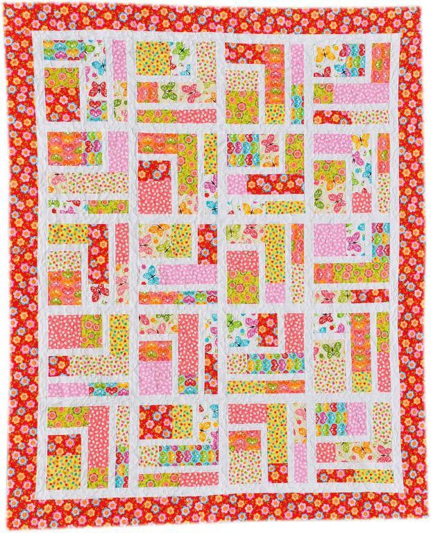 64in x 77in. 10 Fat Quarters and 2 contrasting yards.