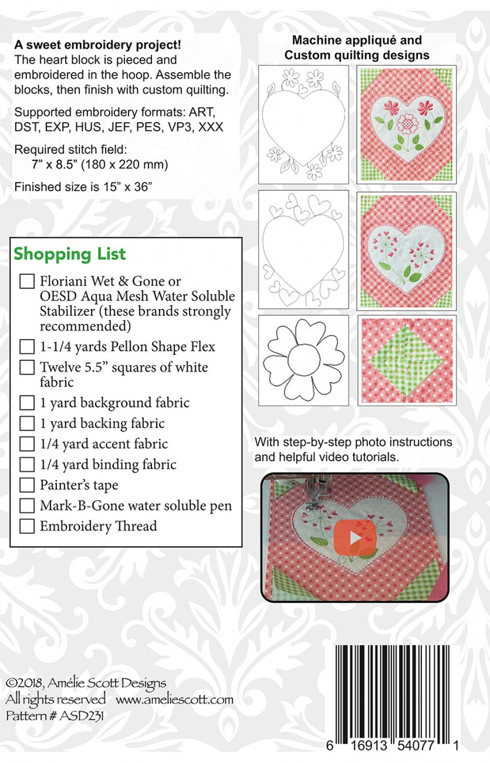 This is the second in our new Year Long Table Runner product series. This classy table runner is a mostly in the hoop project. Customers use their embroidery machine for the piecing and applique. They can then assemble the blocks, use their machine to stitch custom quilting designs, created just for this project.