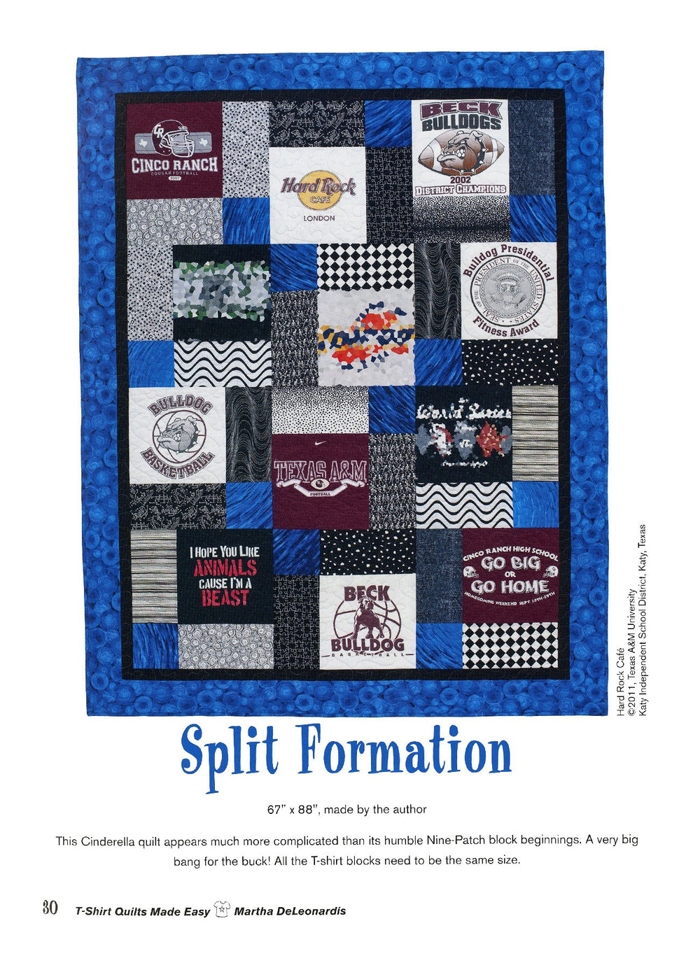 T-shirt quilts have always been difficult to make look good. No longer! Martha has mastered the art of stabilizing all kinds of stretchy fabrics to corral the quilt top into straight lines. She then uses a 'Comparative Quilt Design Chart' to show how to artfully arrange blocks of various sizes into a visually pleasing whole. Use Martha's finished quilts as jumping-off points to design unique presentations of precious mementos that are precut-friendly.
