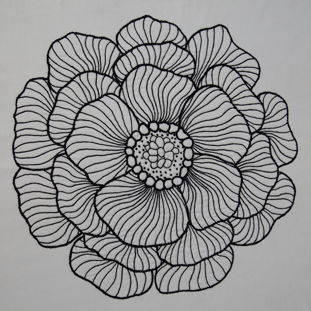 This large, showy flower is completed by hand using only three embroidery stitches. Stem stitches, chain stitches, and French knots work together to form the beautiful bloom that would be gorgeous in any room of your home. It works up quickly, so make one for yourself and another one for a friend. Frame it, quilt it, or stretch it over a canvas. You can’t go wrong with this glorious cluster of graceful petals! The finished design measures approximately 13″ by 13″.