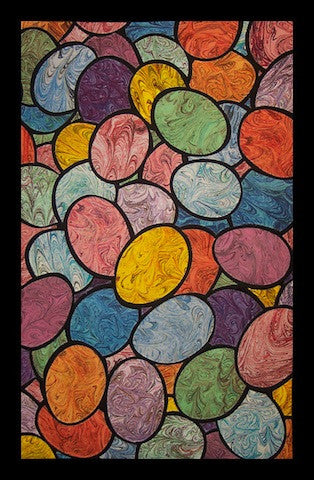 Remember the magic of a paint brush in the Easter Bunnys hand? And where did he find such beautiful colors? From the magic rainbow,� of course! Cant you just imagine the joy on the faces of the children who find these marbleized eggs in their basket on Easter morning? Beautiful in any combination of fabrics, this wall-hanging will help you celebrate Spring, year after year.20� x 30�