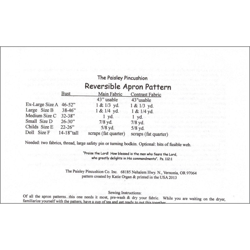Reversible Apron Pattern is backordered and will ship as soon as it is back in stock.