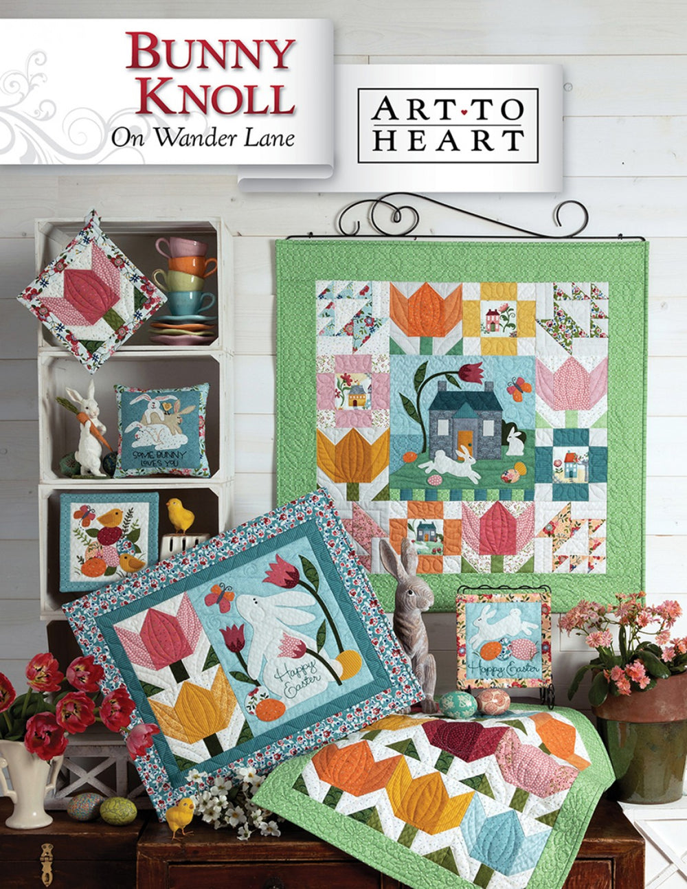 See what's happening On Wander Lane this month with Bunny Knoll On Wander Lane by Art to Heart. This 8-1/2" x 11" pattern offers a block of the month quilt plus six additional projects including a table topper, pot holder, pillows and more! There's lots of fun happening On Wander Lane!