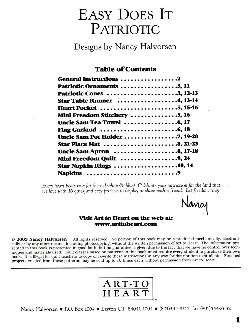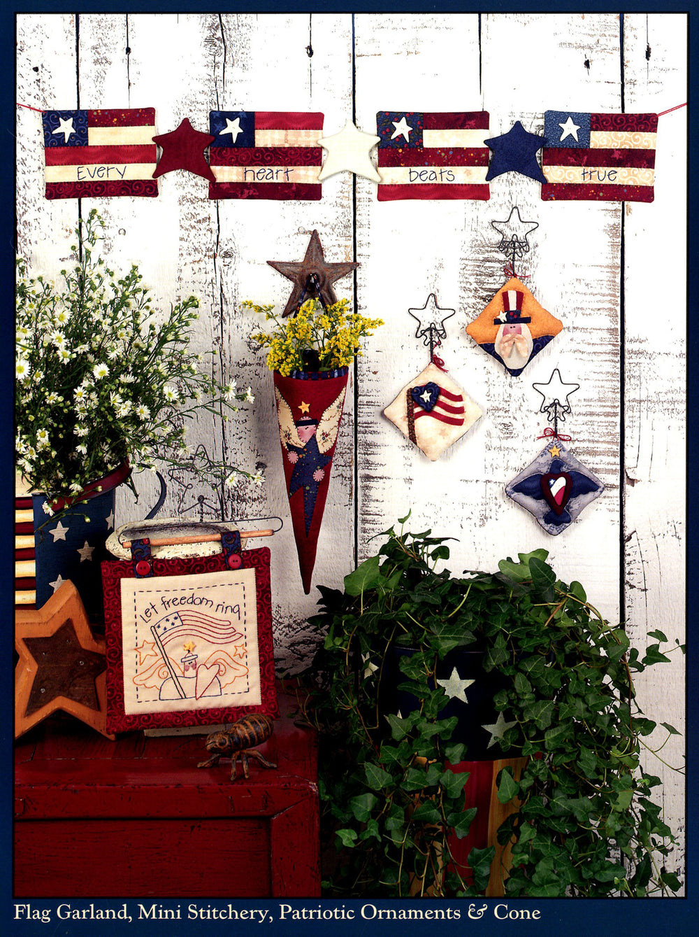 Every heart beats true for the red white and blue! Celebrate your patriotism for the land that we love with 16 quick and easy projects to display or share with a friend. Let freedom ring! Parotitic 4th of July theme projects include quilts, stitcheries, tea towels, pot holders, place mats, table runner, apron and more.