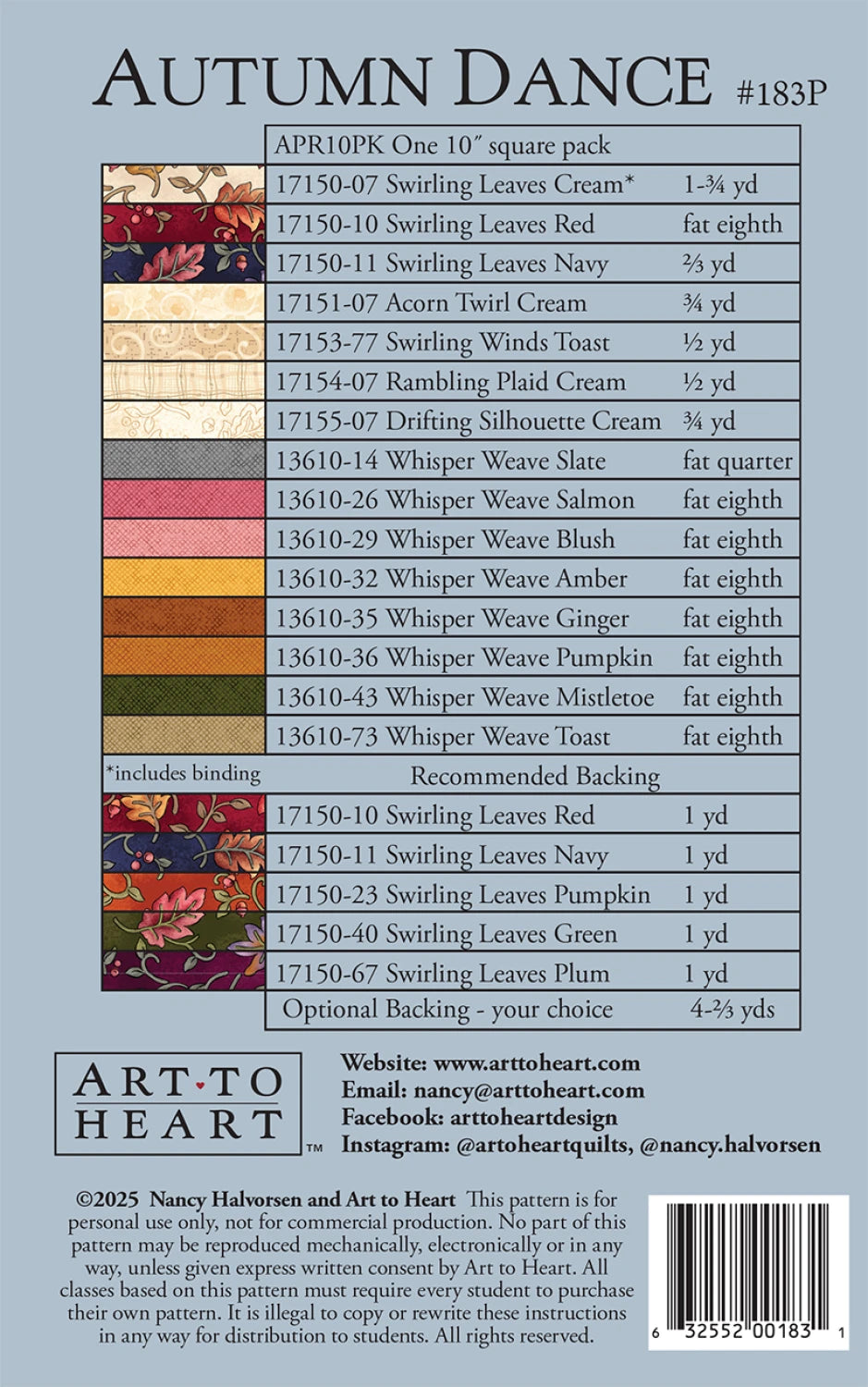Autumn Dance Quilt Pattern is backordered and will ship as soon as it is back in stock.