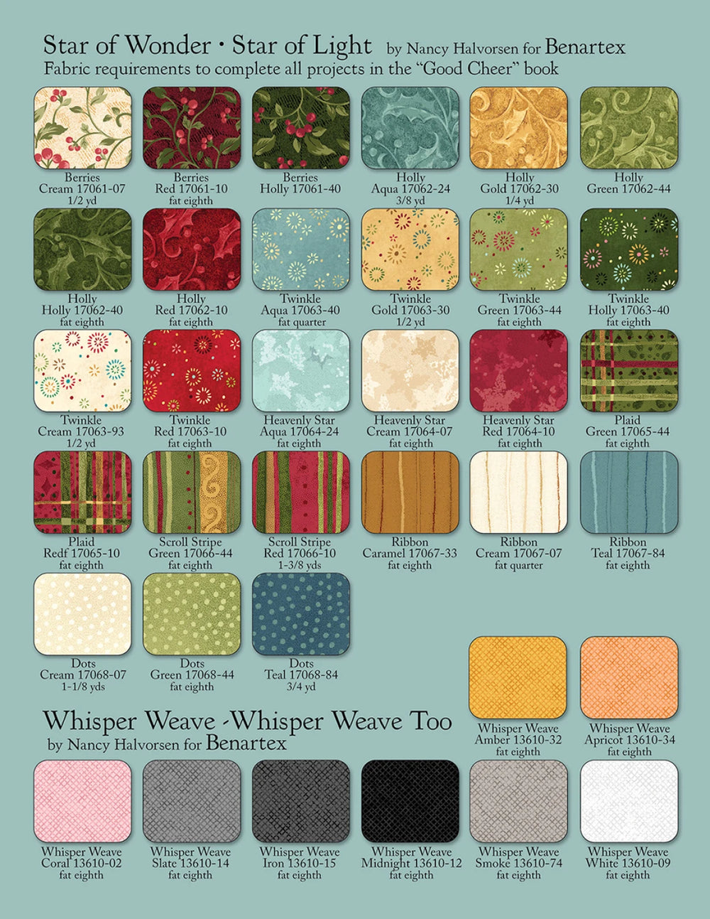 There are 9 projects using my new “Star of Wonder Star of Light” fabric line for Benartex.