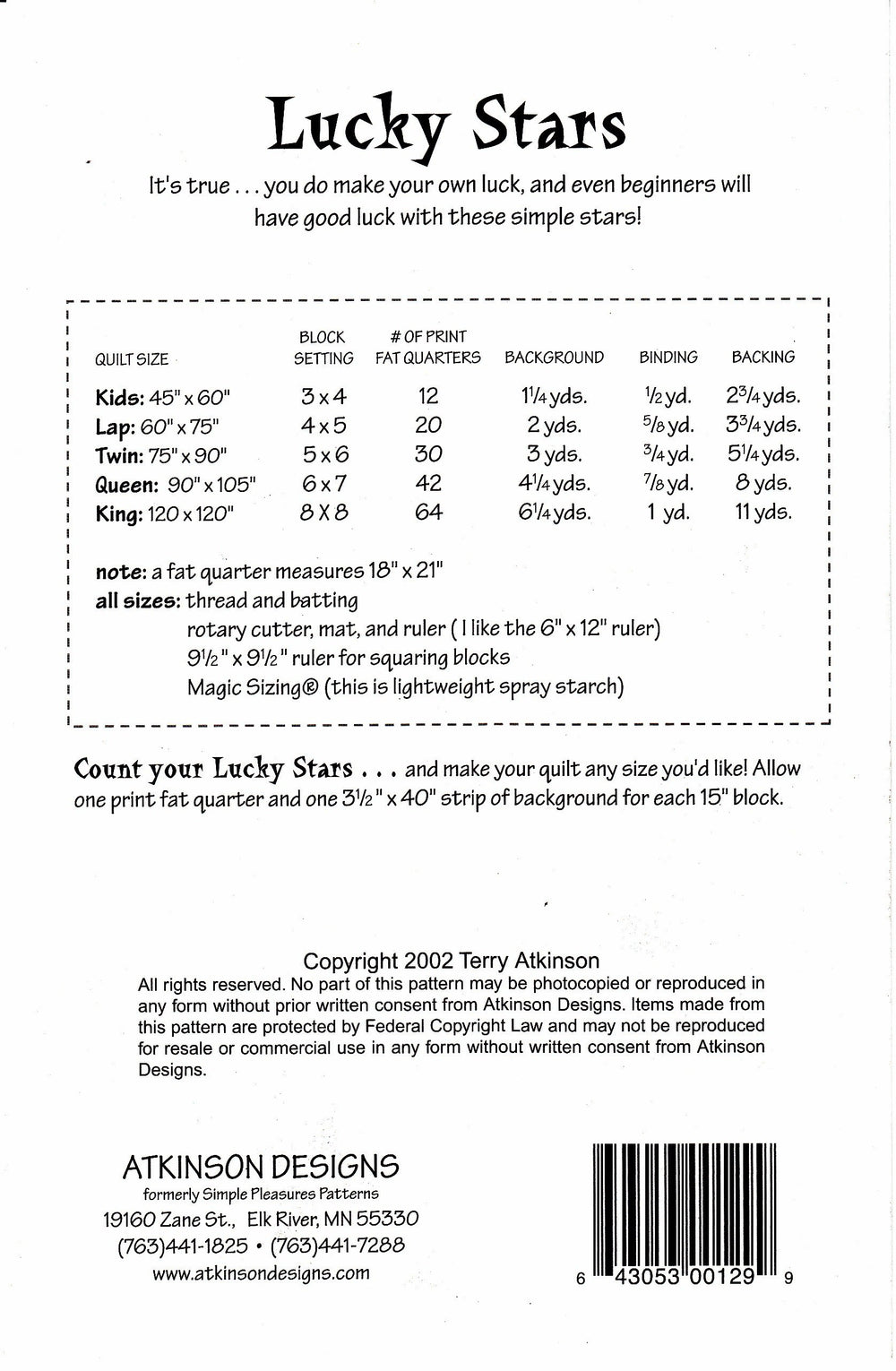Lucky Stars Quilt Pattern is backordered and will ship as soon as it is back in stock.