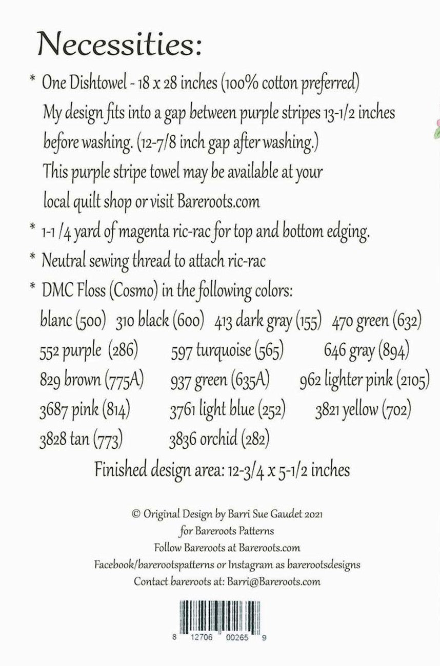 Hand embroidery dishtowel pattern with full size design page, easy to follow directions and color scan for quick color reference. Fits on a 18 x 28 inch dishtowel.