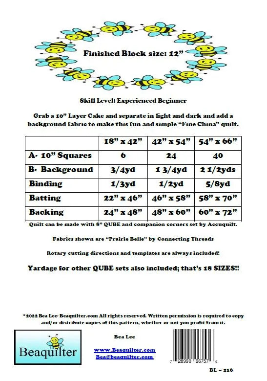 Fine China Quilt Pattern is backordered and will ship as soon as it is back in stock.