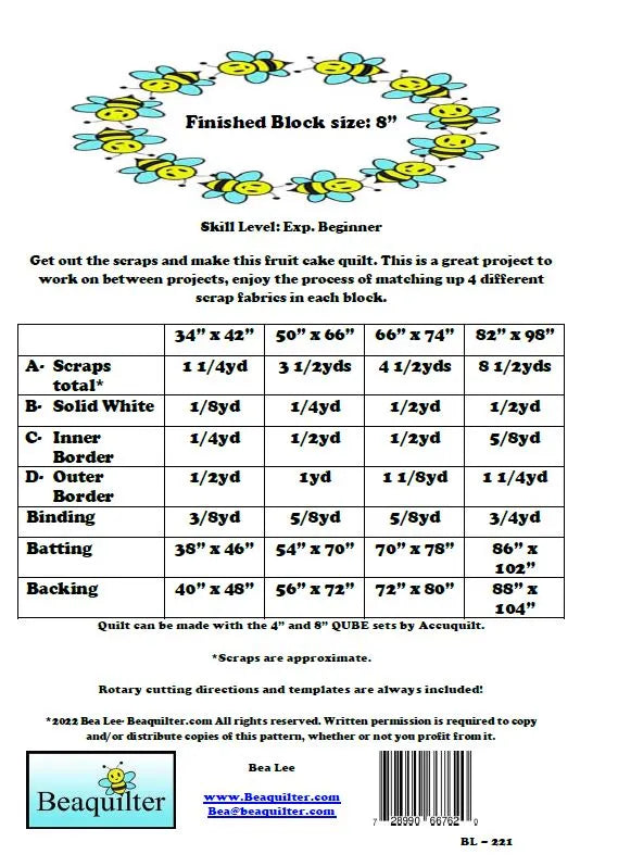 Fruit Cake Quilt Pattern is backordered and will ship as soon as it is back in stock.