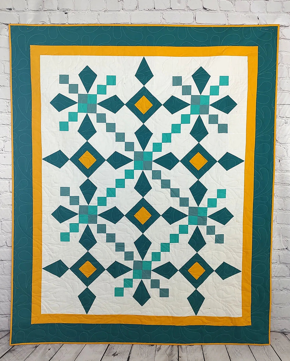 Designing this quilt with the “spikes” on the border edges, I immediately thought of a Royal crown, how ornate those can be. It’s a fun and quick quilt to make, looks complicated but it’s really not!