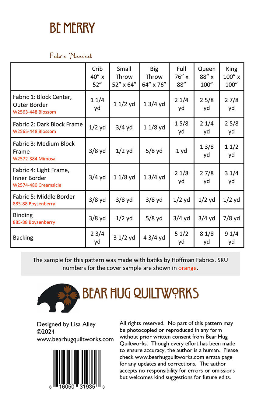 Be Merry Quilt Pattern is backordered and will ship as soon as it is back in stock.