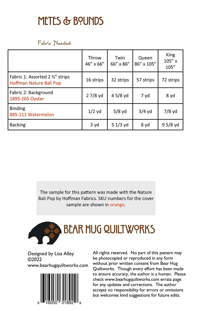 Metes & Bounds Quilt Pattern is backordered and will ship as soon as it is back in stock.