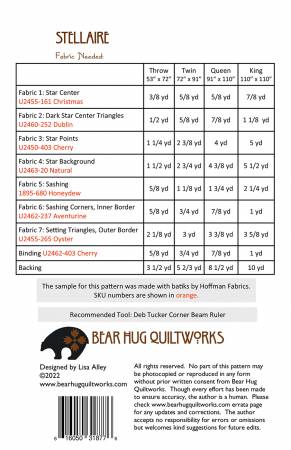 Create a dramatic star-studded quilt with this confident beginner pattern. Points are paper pieced or use a Deb Tucker Corner Beam ruler. Instructions are included for four different quilt sizes from twin size to king size.