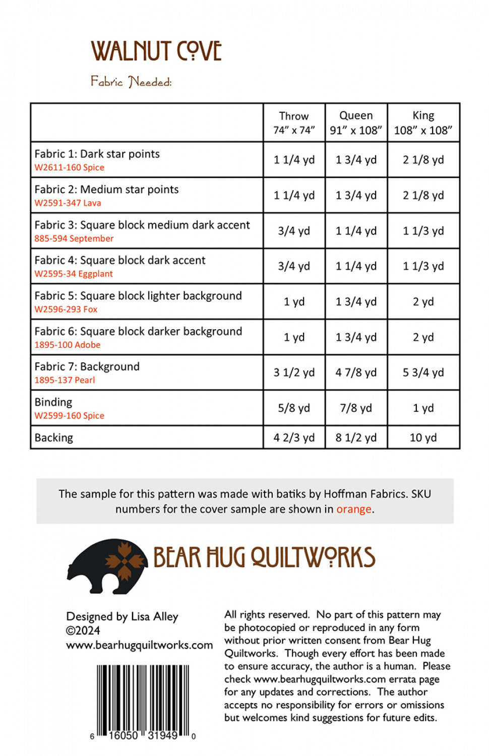 Walnut Cove Quilt Pattern is backordered and will ship as soon as it is back in stock.