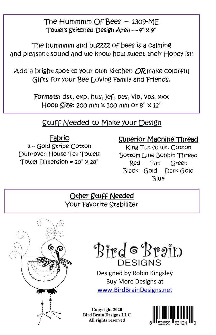 The Hummmm of the Bees Machine Embroidery Pattern CD is backordered and will ship as soon as it is back in stock.