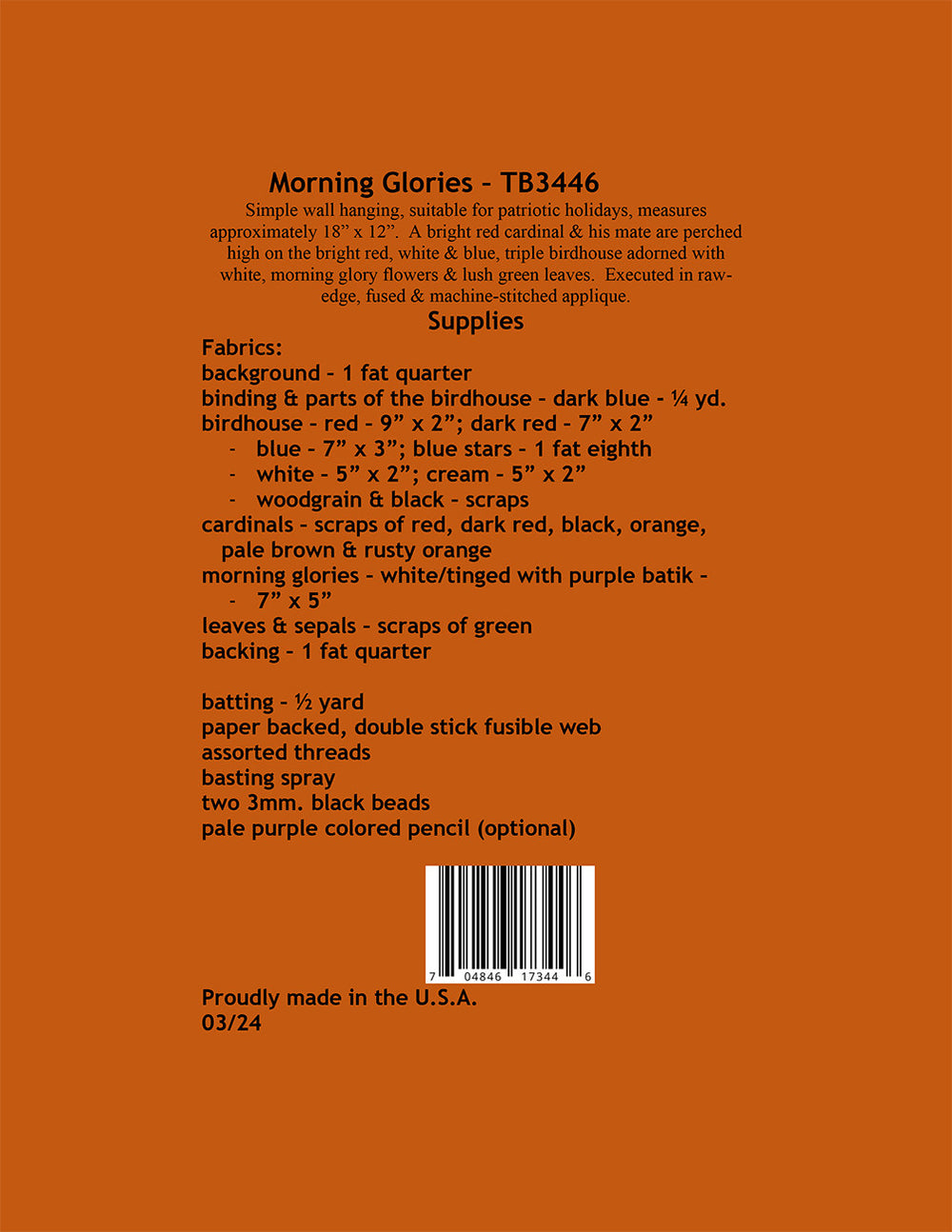 Morning Glories Quilt Pattern is backordered and will ship as soon as it is back in stock.