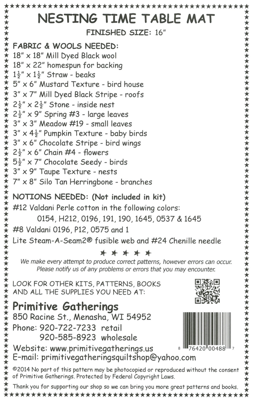 A new sweet wool applique mat from Lisa.....this is perfect for anyone who loves birds. It is a nice size of 16� x 16�.