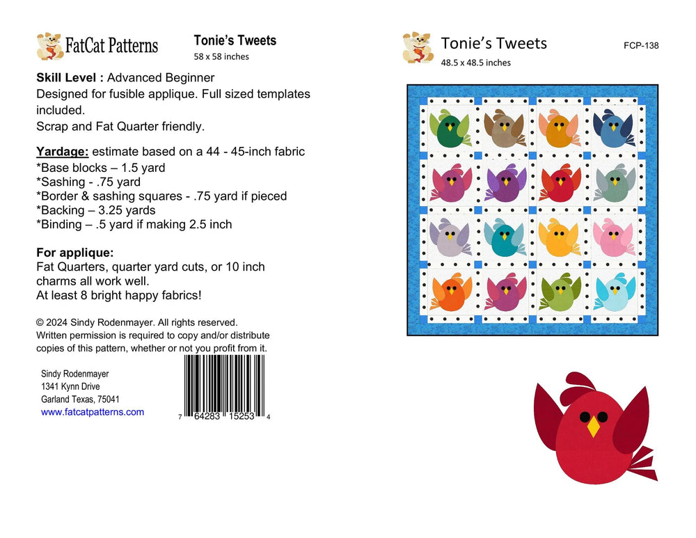 Tonie's Tweets Quilt Pattern is backordered and will ship as soon as it is back in stock.