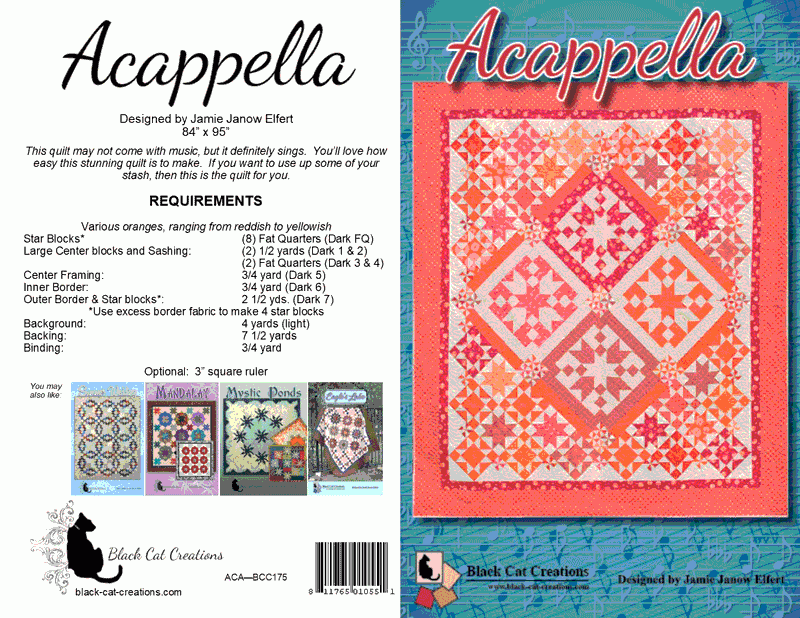 Acappella Quilt Pattern is backordered and will ship as soon as it is back in stock.