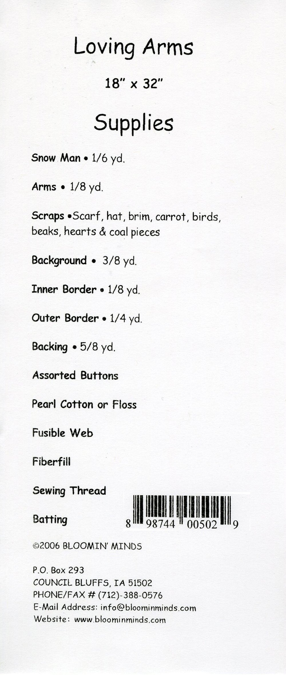 Loving Arms is a little one design pattern that is half the size of the full size patterns. 18in x 32in