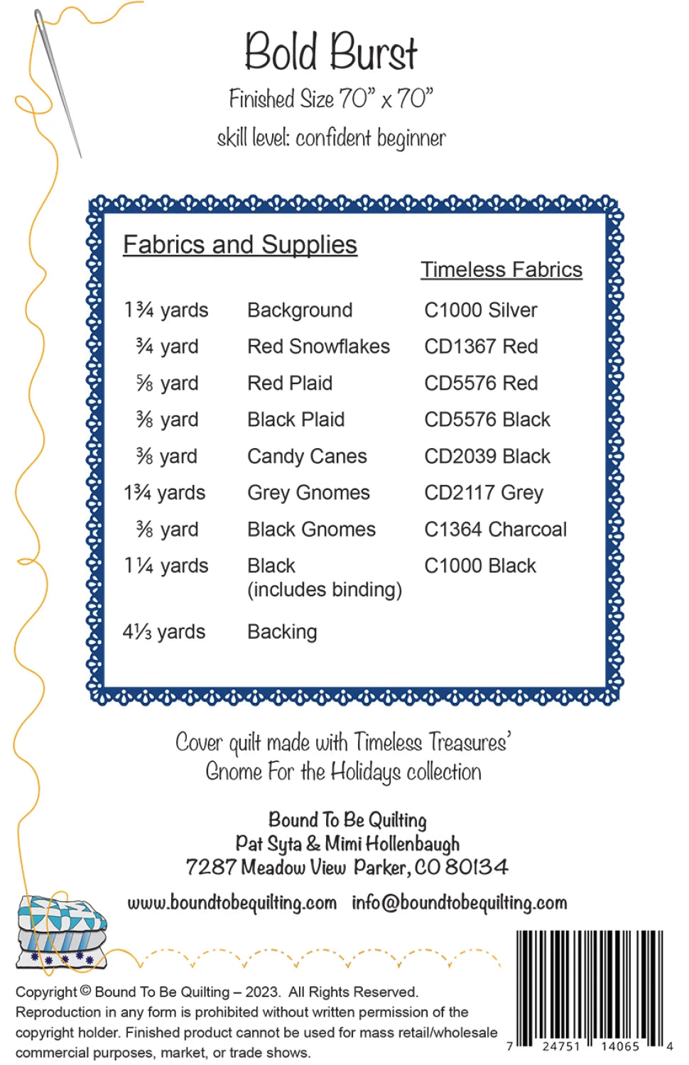 Our sample is made with Timeless Treasures' Gnome For The Holidays collection.