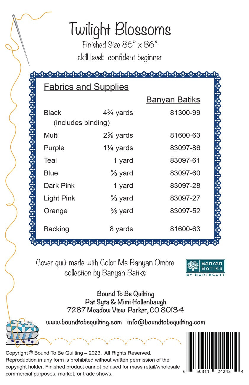 Twilight Blossoms Quilt Pattern is backordered and will ship as soon as it is back in stock.