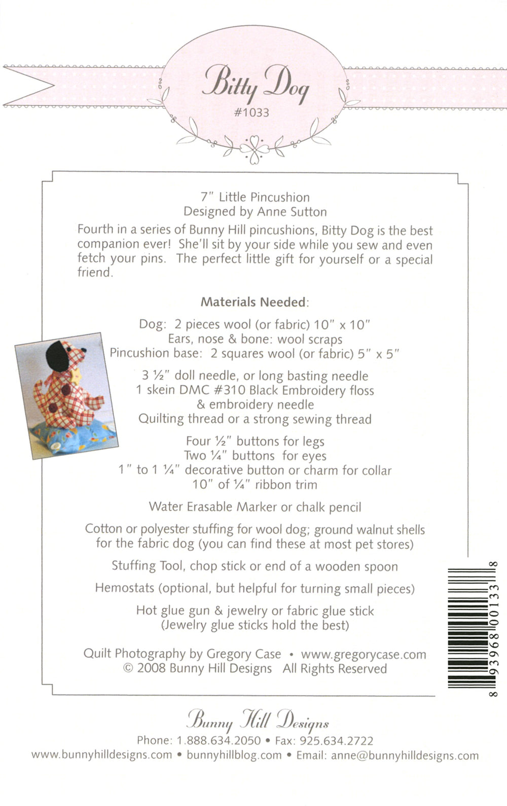Bitty Dog is cute in either wool or fabric. She'll sit by your side while you sew and be your ever faithful companion. Easy construction makes this a half day project. Make one for all your sewing friends!