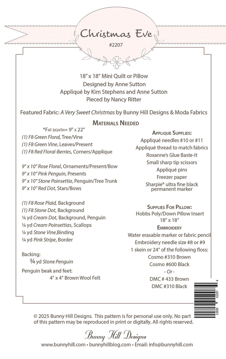 Christmas Eve, an 18 x 18 mini quilt or pillow. If you love penguins, this one is for you.