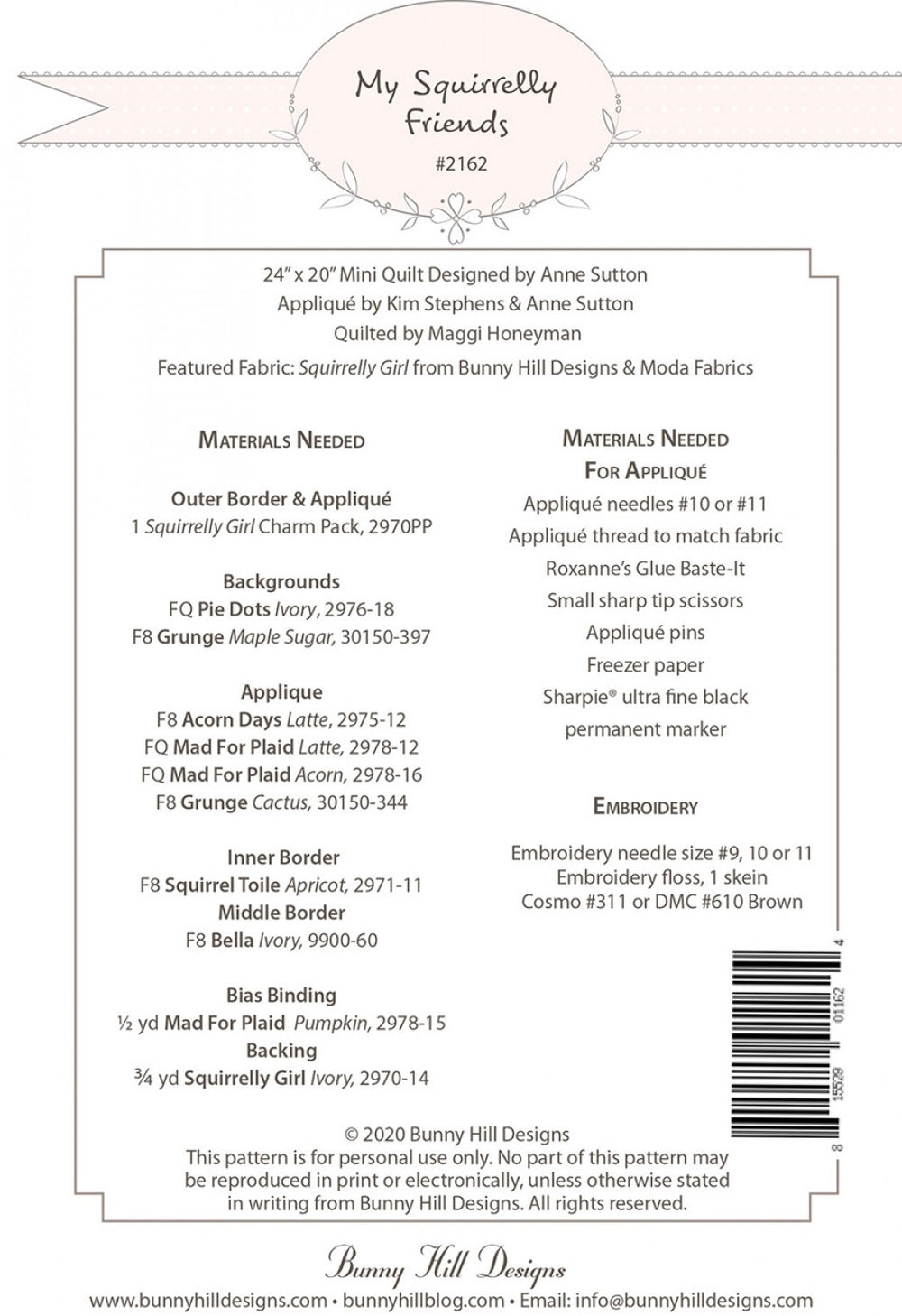 Charm pack friendly, My Squirrelly Friends celebrates the fun friends we all have in our lives. The perfect mini quilt for the Fall season, My Squirrelly Friends, is sure to make you smile.