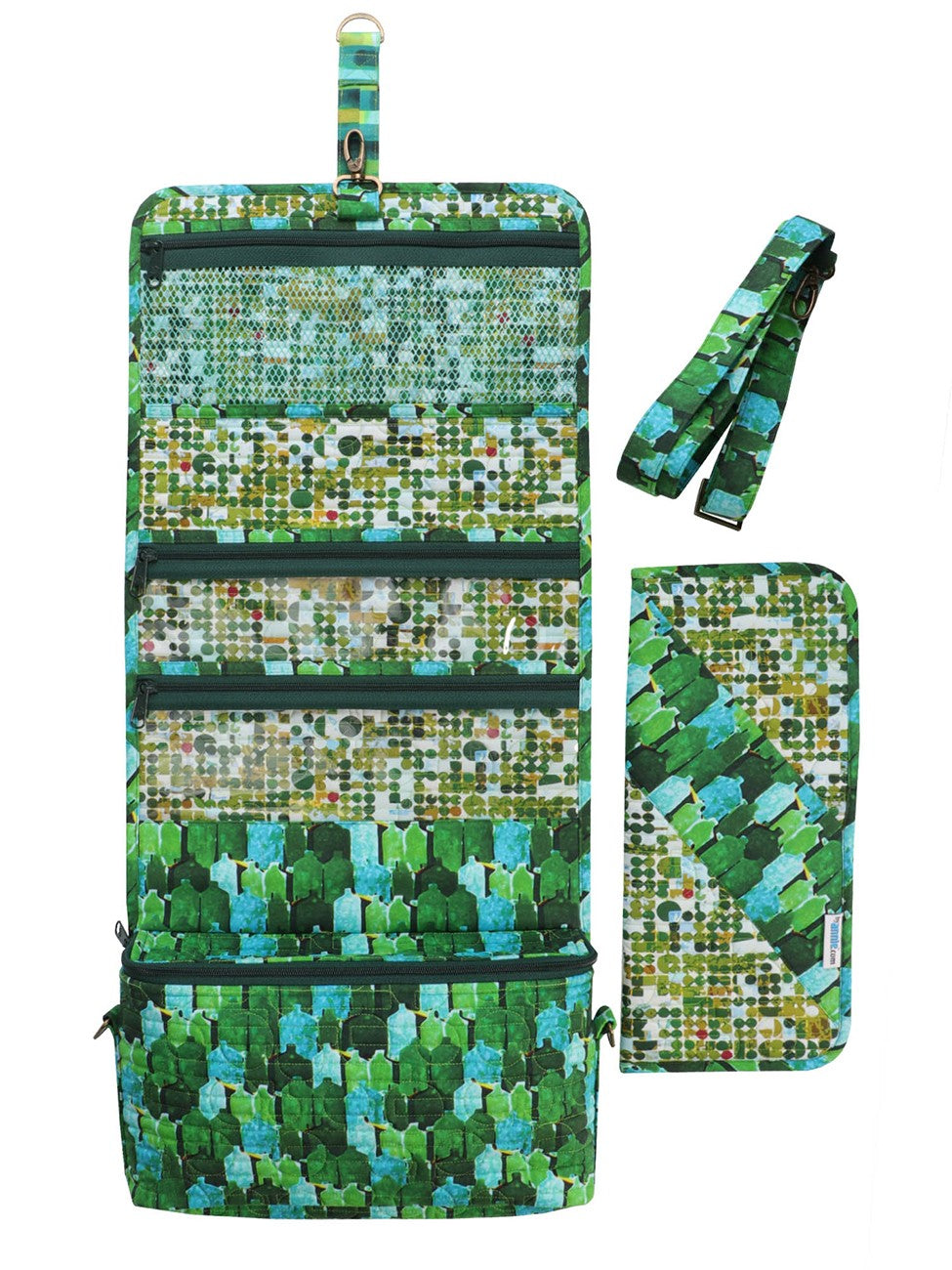 The Organizer has mesh and vinyl pockets for visible storage. A deep zippered pocket on the bottom on the inside is perfect for larger items. A zippered pocket on the outside conceals an attached Hanging Strap that enables the Organizer to be hung from a rod or hook.