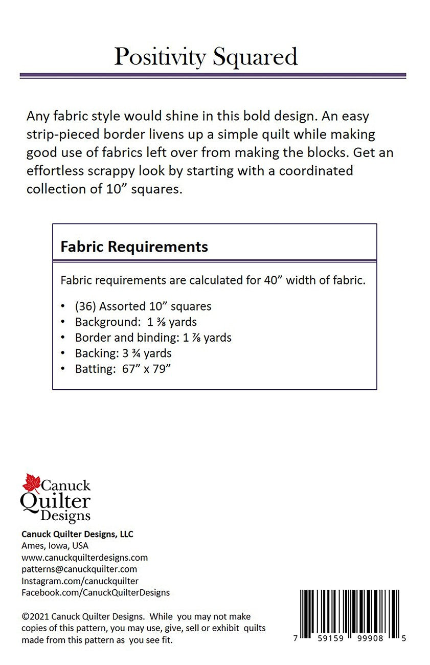 Positivity Squared Quilt Pattern is backordered and will ship as soon as it is back in stock.
