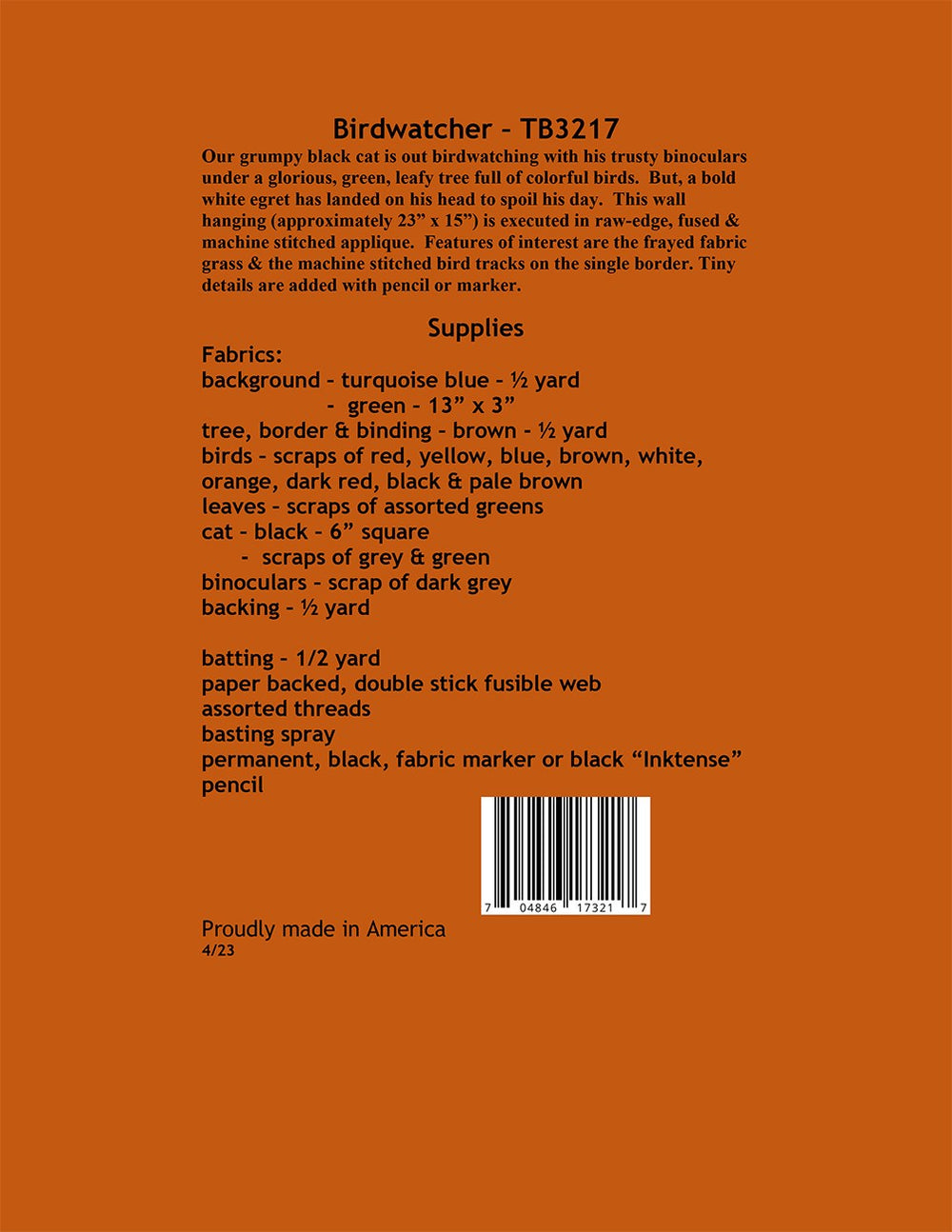 Birdwatcher Quilt Pattern is backordered and will ship as soon as it is back in stock.