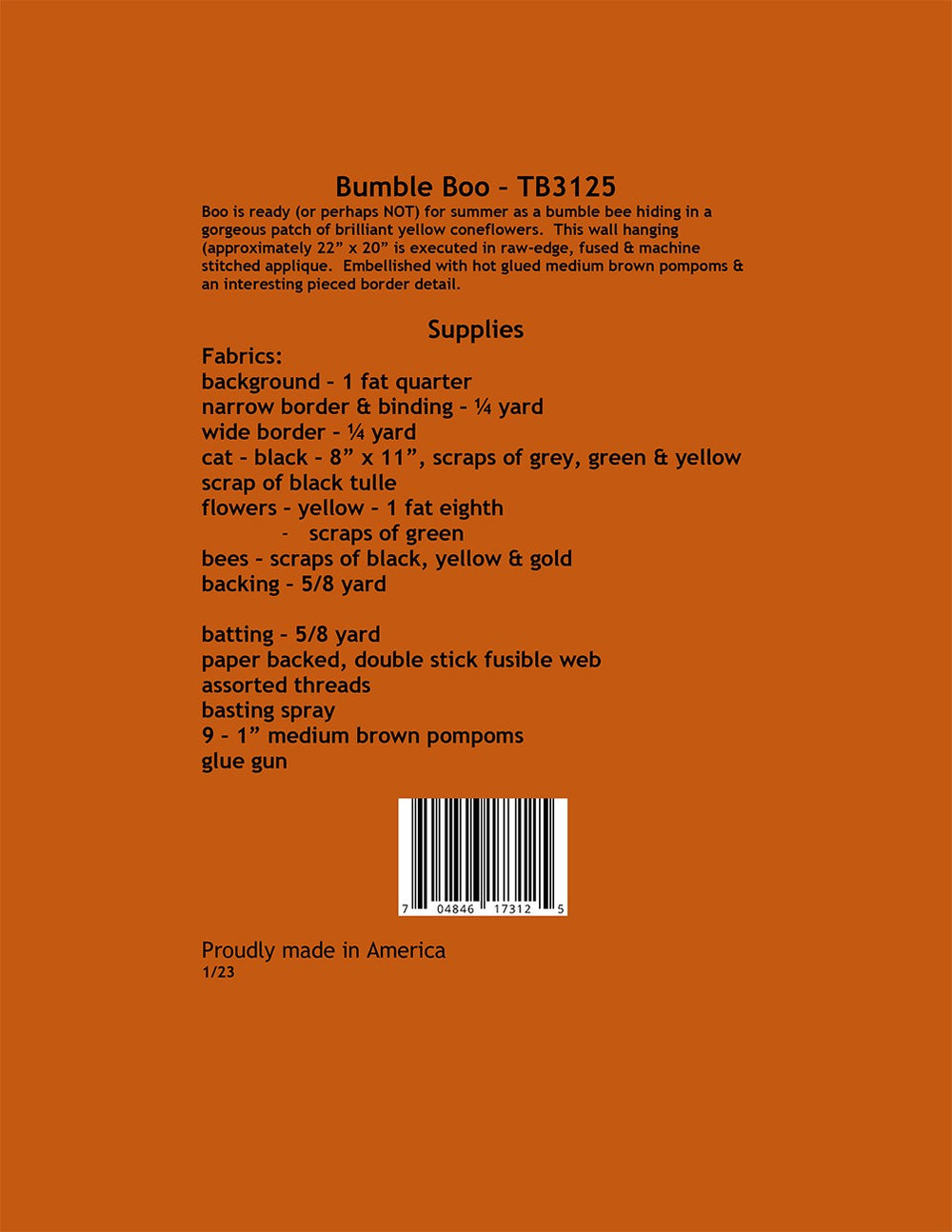 Bumble Boo Quilt Pattern is backordered and will ship as soon as it is back in stock.