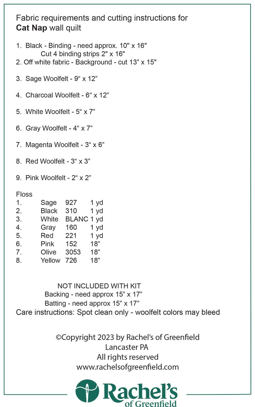Cat Nap Wall Quilt Pattern is backordered and will ship as soon as it is back in stock.
