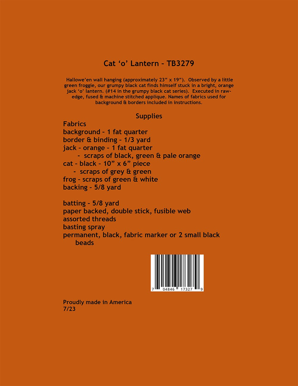 Cat O Lantern Quilt Pattern is backordered and will ship as soon as it is back in stock.