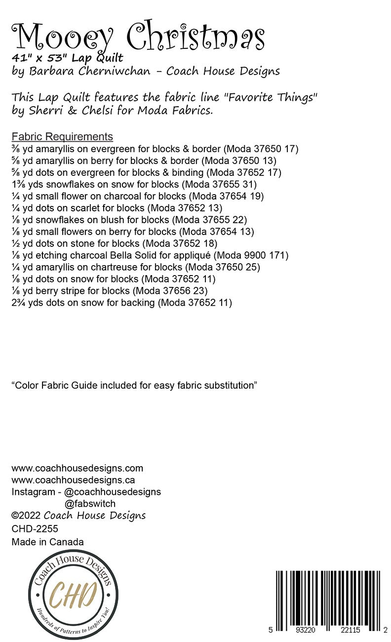 Mooey Christmas Quilt Pattern is backordered and will ship as soon as it is back in stock.
