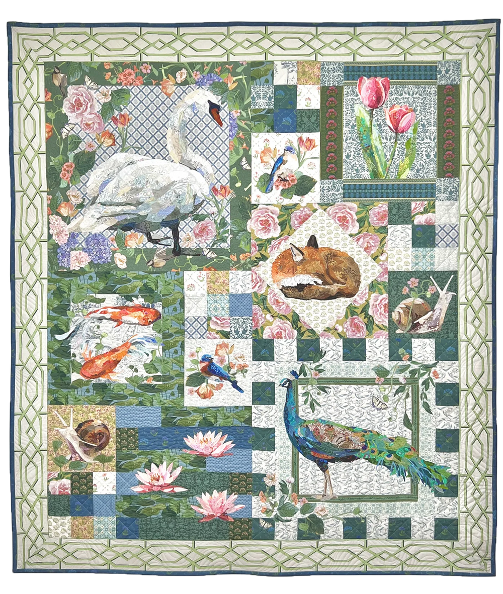 Create the complete Longwood quilt with this parchment pressing pattern. This quilt was made using the Longwood fabric collection and is inspired by Longwood Gardens in Pennsylvania.