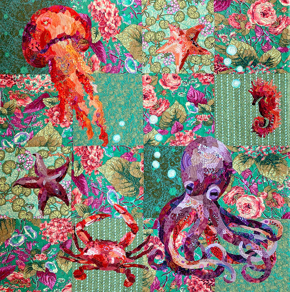 Dive into this beautiful world of sea creatures to create a collage quilt for an ocean lover in your life!