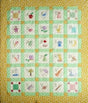 This quilt is a wonderfully simple with only a bit of applique and embroidery on each block. You should have no problem keeping up with the monthly block-of-the-month, which lasts for only six months. This months blocks includes the letters C, E, V, and Y, along with one pieced block.