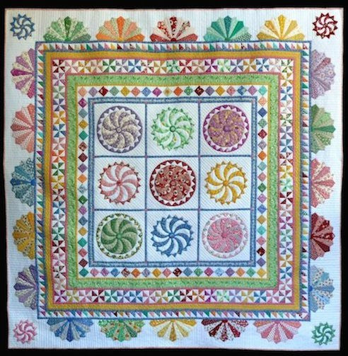 Happy Daze is a refreshingly cheerful quilt with its whimsical spiral balls, half-dresden plates, and more! Sue Garman reminds us that working with 1930s-style fabrics is so much fun because the prints are always "happy" ones. This quilt pattern is designed as a 6-month block-of-the-month series.