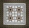 The feathered star is a favorite block for many people, with its many triangles keeping your eyes dancing across the block. A quilt with several feathered star blocks in it should have you dancing with joy! This quilt is made using paper foundations. A full set of foundations for four complete feathered stars and the half-square triangle border are included in this pattern. The feathered star block measures 15 inches square (finished size). The finished quilt measures 49-1/2 inches square.