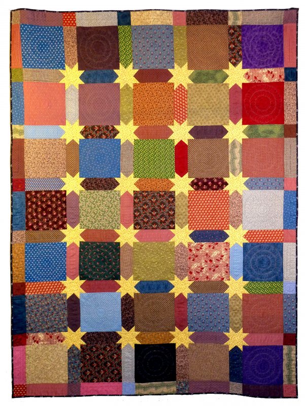 Choose one, two, or three quilts to make! Each is a scrappy designed to be a stashbusting quilt that can be done relatively quickly and easily. The Checkerboard Quilt measures 61 by 86 inches; Cornerstone Stars measures 55 by 76 inches; and the Double Four-Patch measures 60 by 74 inches. These quilts, all designed by Sue Garman, are wonderfully fast to finish!