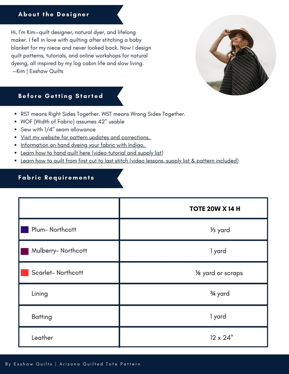 • Step-by-step instructions for making a finished 20 × 14″ quilted tote