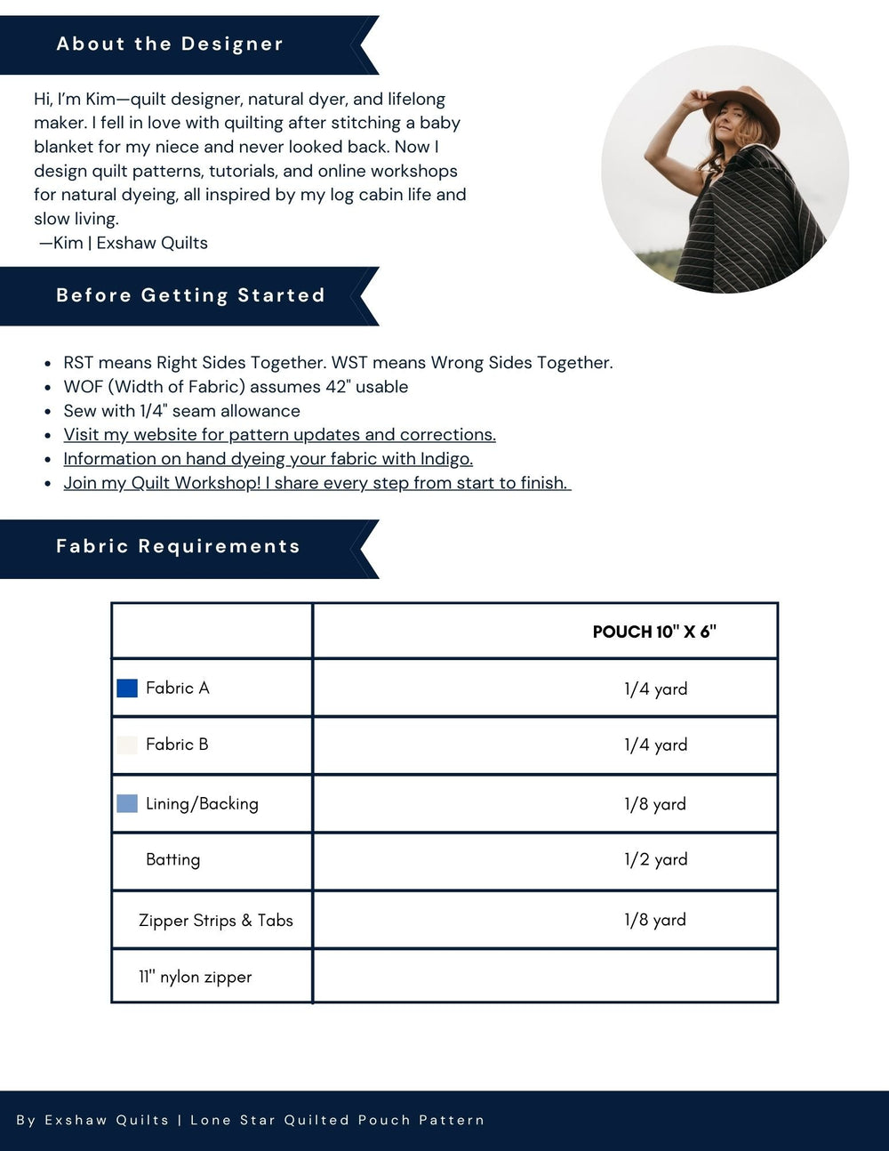 - All Exshaw Quilt patterns assume 42" WOF and ¼" seam allowance