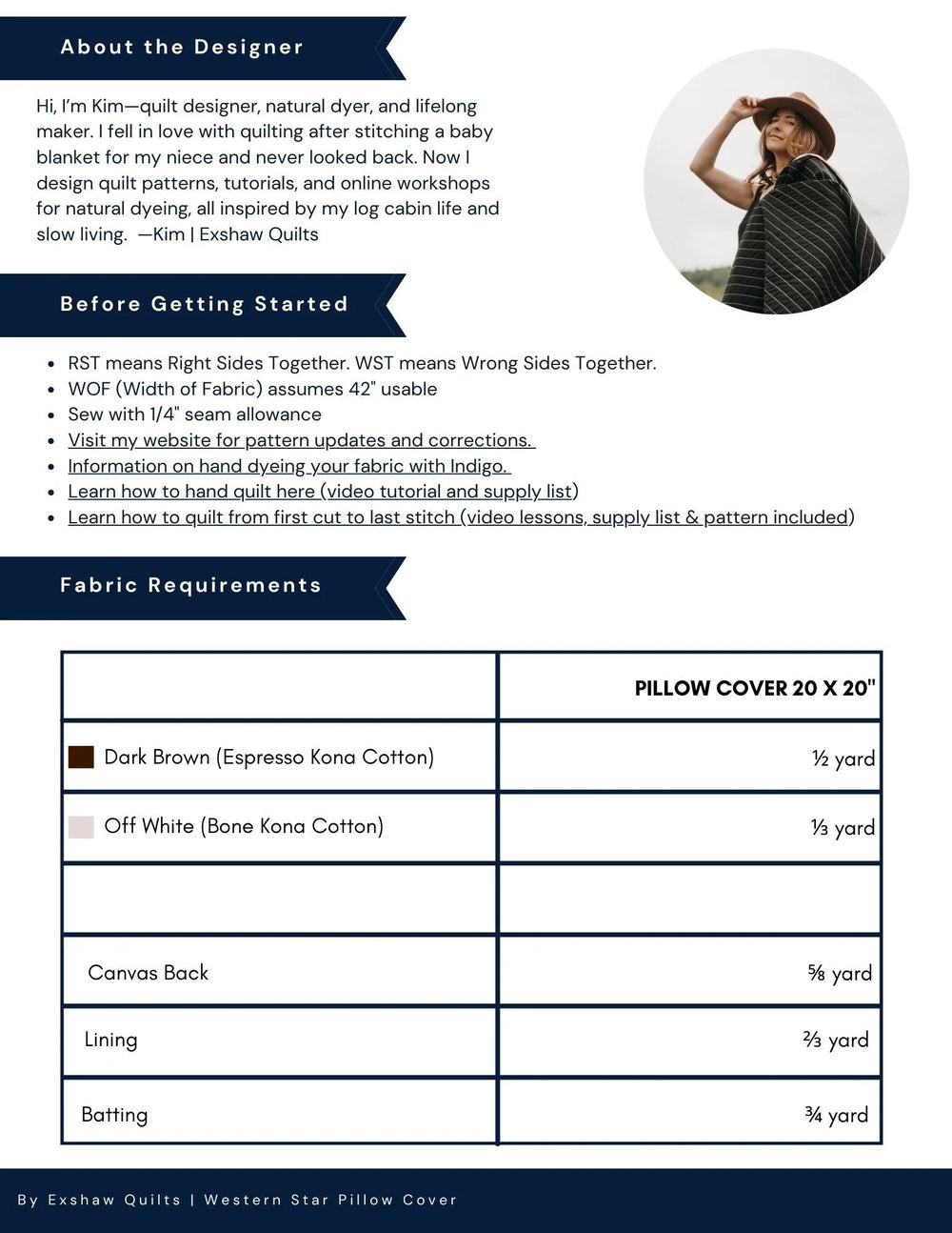 • Step-by-step instructions for making a finished 20" × 20" pillow