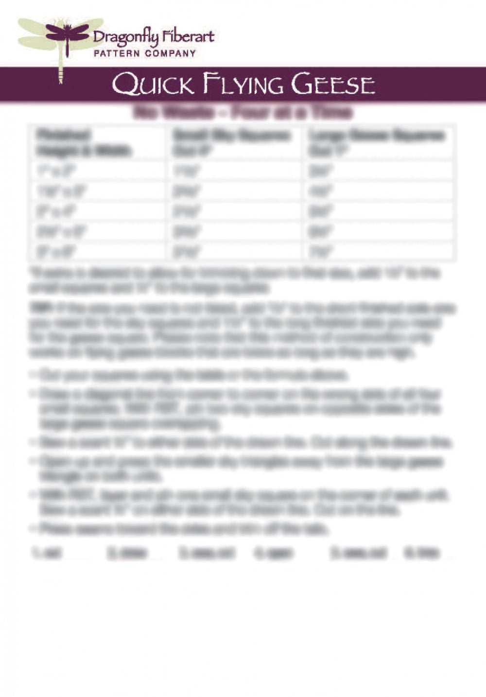 New learning series cards teach a technique and are perfect for building a reference library for block components or other often looked up techniques. This Flying Geese Card features the no waste four at a time technique as well as the common flip, sew cut technique. Includes cutting tables and formulas.