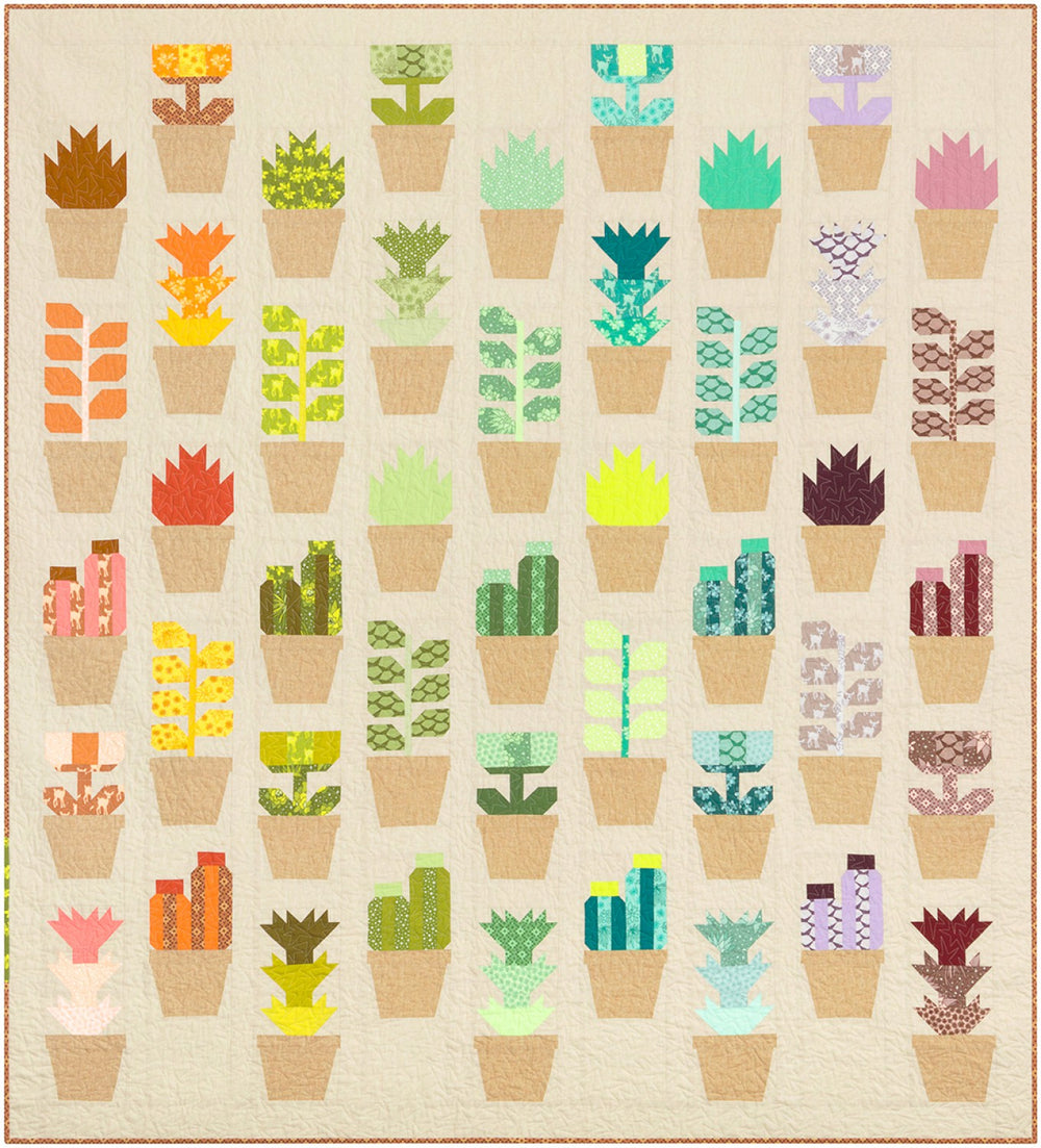 Greenhouse is a 10in Square (Layer Cake) friendly plant sampler quilt using conventional patchwork piecing techniques. This pattern includes five different plant blocks that can be used to make three quilt sizes. Sample quilts feature my Terrarium Fabric Collection for Robert Kaufman Fabrics.