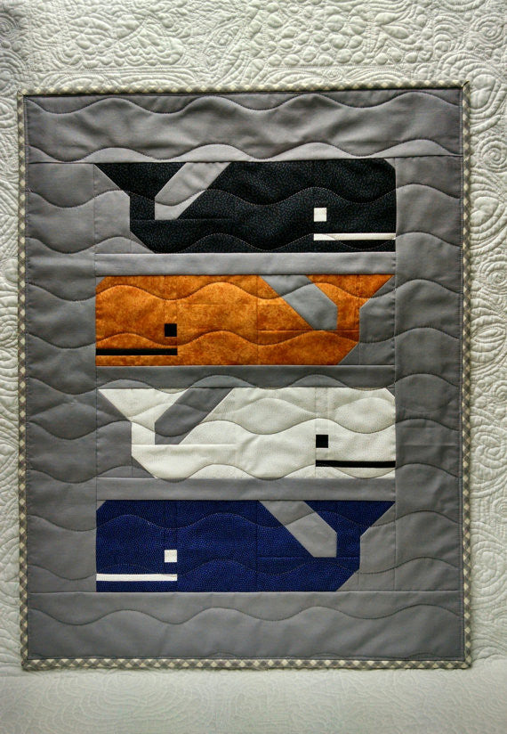 Use fat quarters, fat sixteenths, or scraps to make a pod of happy patchwork whales. This pattern is made using basic patchwork techniques. No paper piecing or templates!