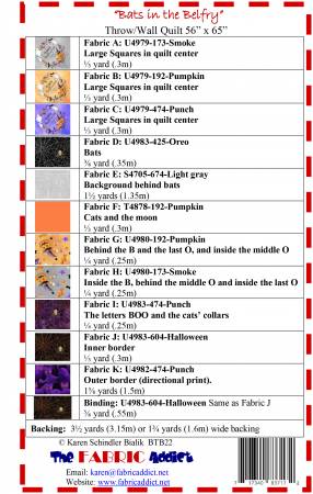 Bats in the Belfry quilt pattern. Throw/Wall size. No curved piecing - curved look are pieces sewn on, and rolled back. Featured fabric is Boo by Hoffman.